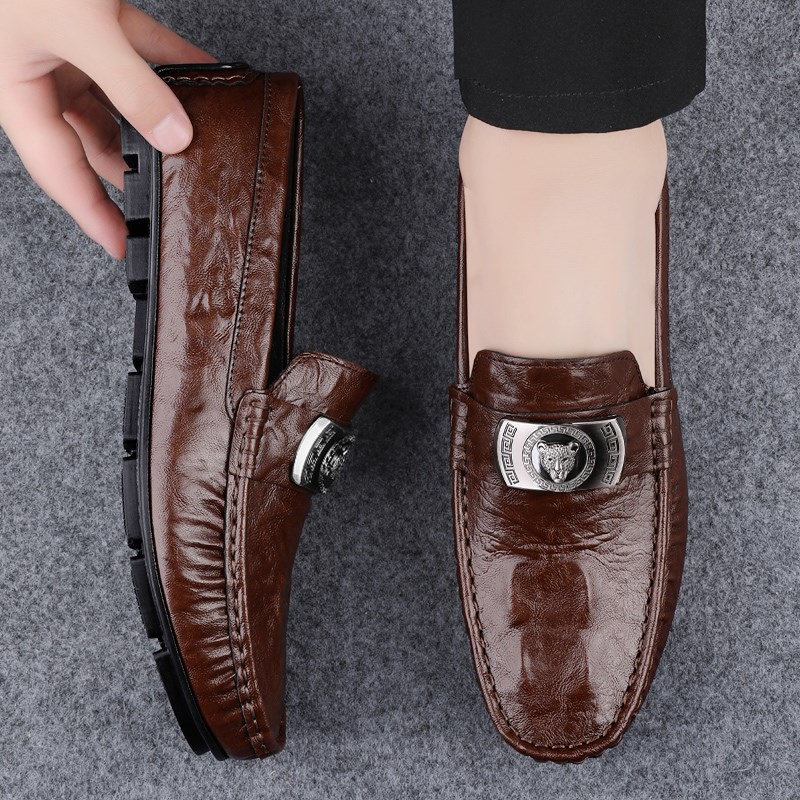 头层牛皮男鞋新款休闲皮鞋真皮男士轻便透气软底耐磨一脚蹬懒人鞋