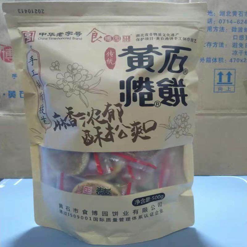 湖北特产食博园黄石港饼500g薄脆黑芝麻馅饼散称休闲零食传统糕点