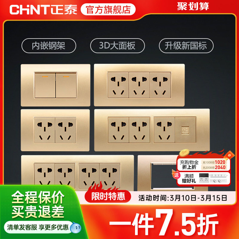 - 德力西香槟金开关插座
