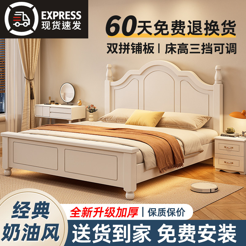 实木床现代简约主卧1米8双人床高端大气奶油风出租房用储物收纳床
