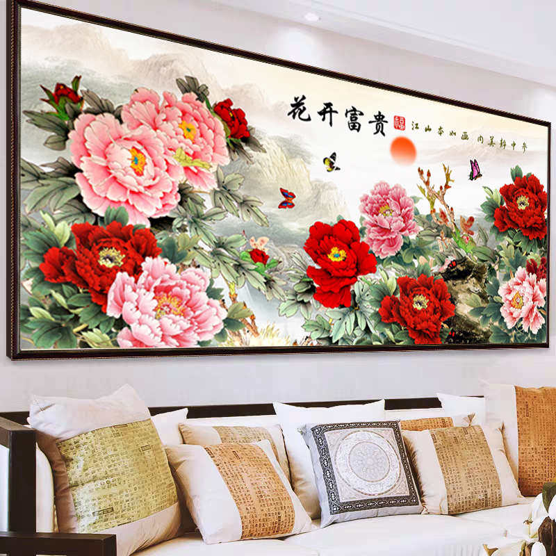 新中式花开富贵钻石画卧室床头大气牡丹花客厅点贴钻十字绣钻石绣