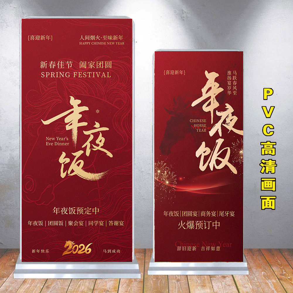 2026新年年夜饭马年春节饭店新年饭预定广告酒店展架易拉宝设计图