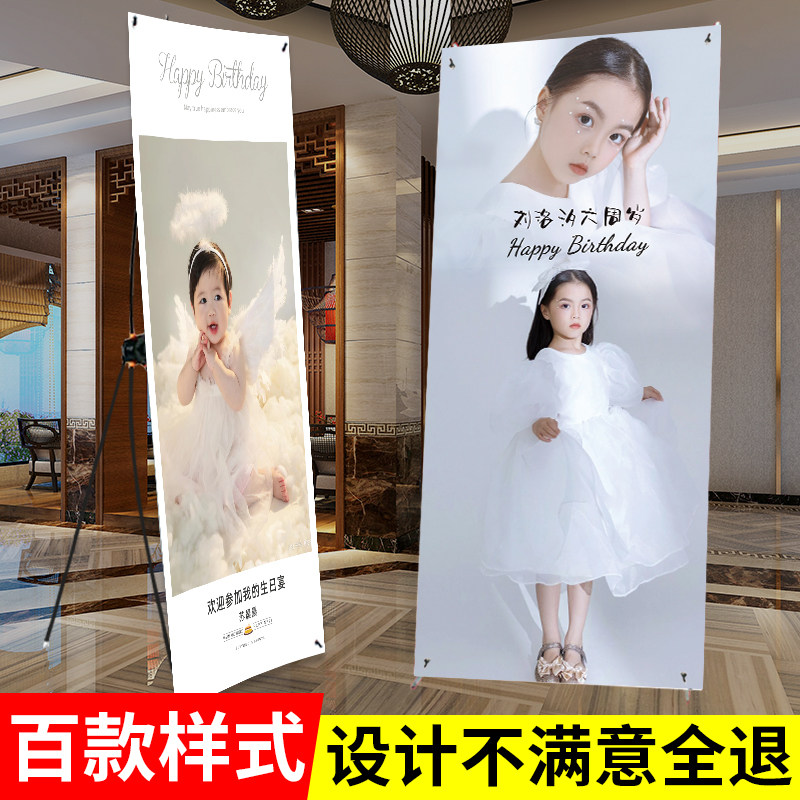 生日海报X展架结婚迎宾展示架易拉宝设计广告牌支架人形立牌定制