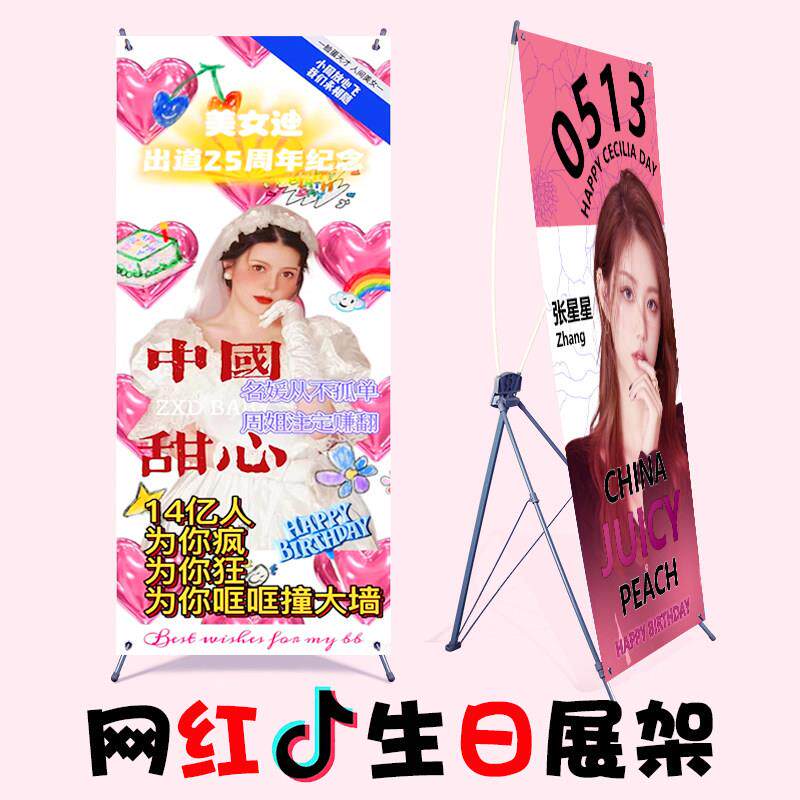 易拉宝x展示架伸缩折叠生日海报架设计制作广告牌定做立式落地式