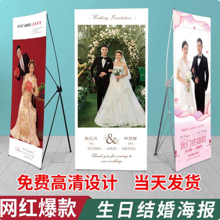 x展架生日立牌易拉宝结婚海报迎宾广告牌招聘支架婚礼庆设计制作