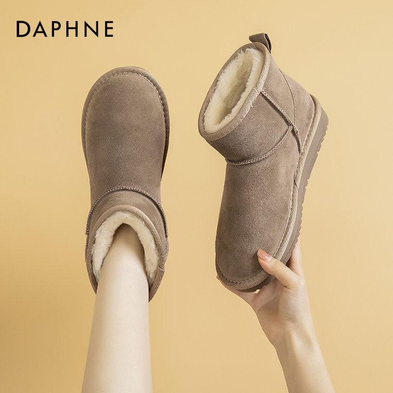 达芙妮防水防滑雪地靴女冬季2025新款加绒加厚真皮面包东北棉短靴