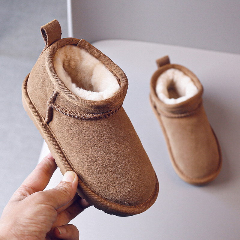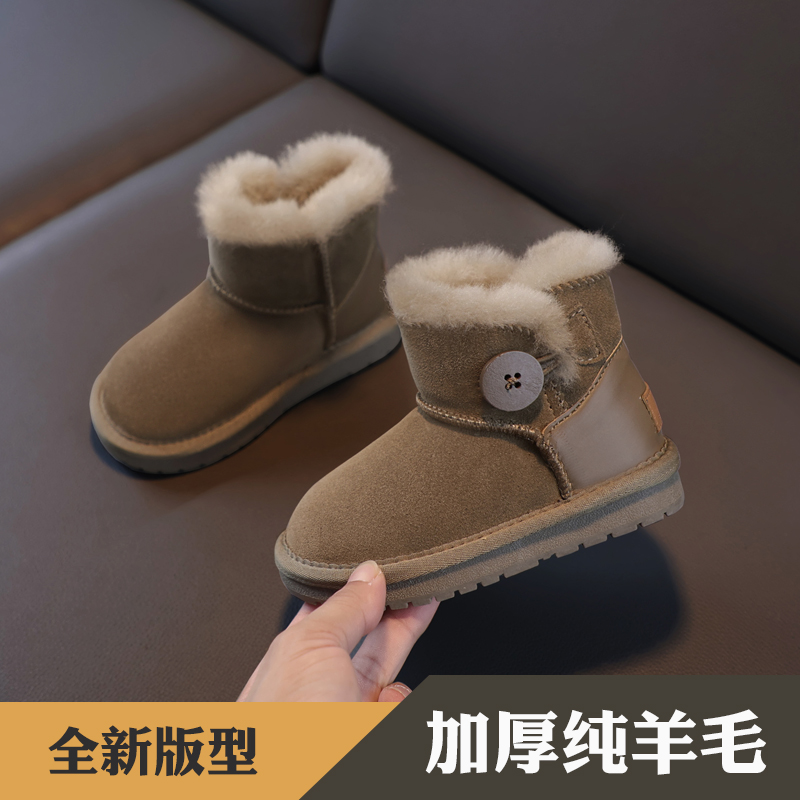 儿童雪地靴冬季真皮男童保暖棉鞋女童短靴子加绒加厚防水宝宝棉鞋