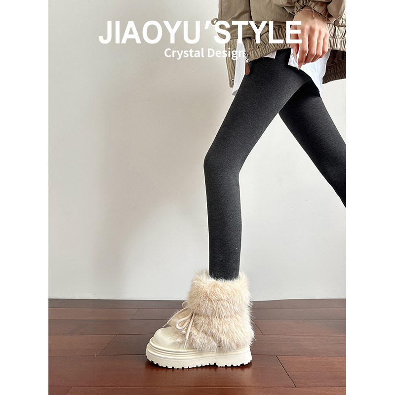 真皮~骄屿厚底防水中筒马丁靴毛茸茸加绒长筒棉鞋羊毛东北雪地靴