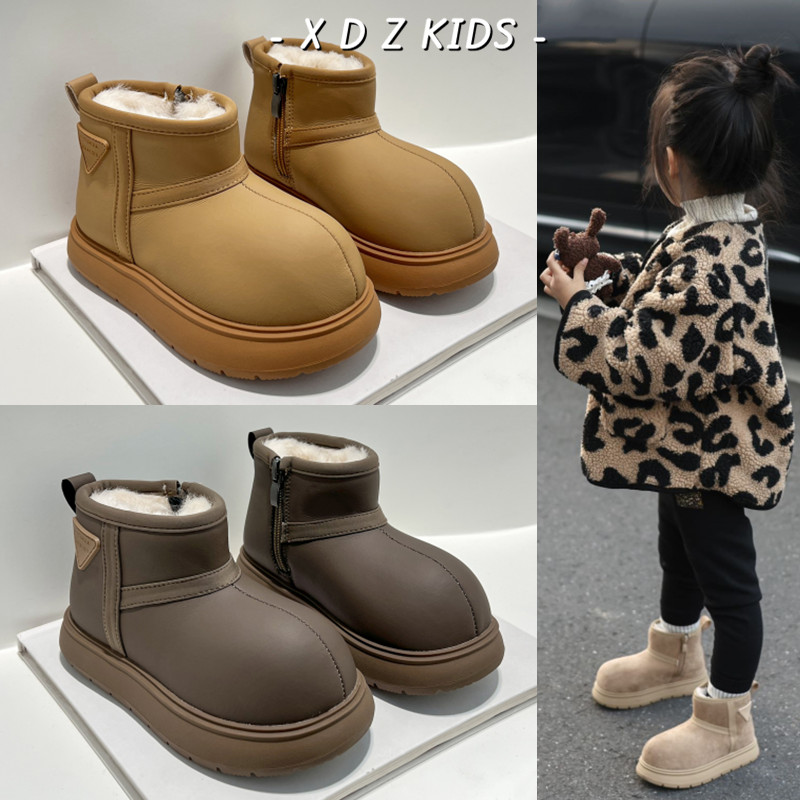 真皮防水女童雪地靴2025冬季新款大头丑萌加绒加厚面包鞋男童棉鞋