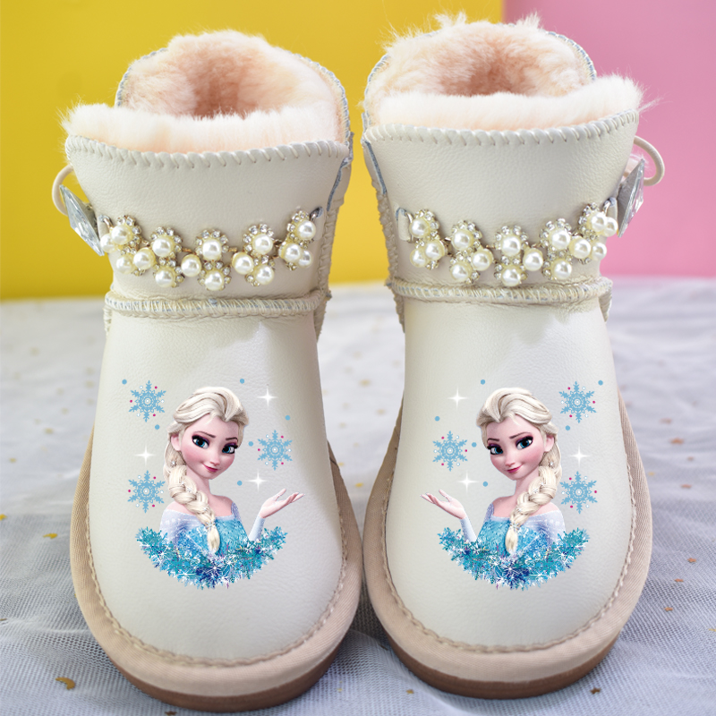 儿童雪地靴女真皮防水公主短靴子女童冬季棉鞋加厚防滑小宝宝童鞋