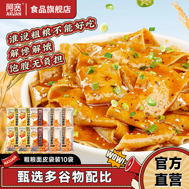 阿宽粗粮红油面皮酸辣干拌105g*10红油面皮方便面铺盖面宵夜美食