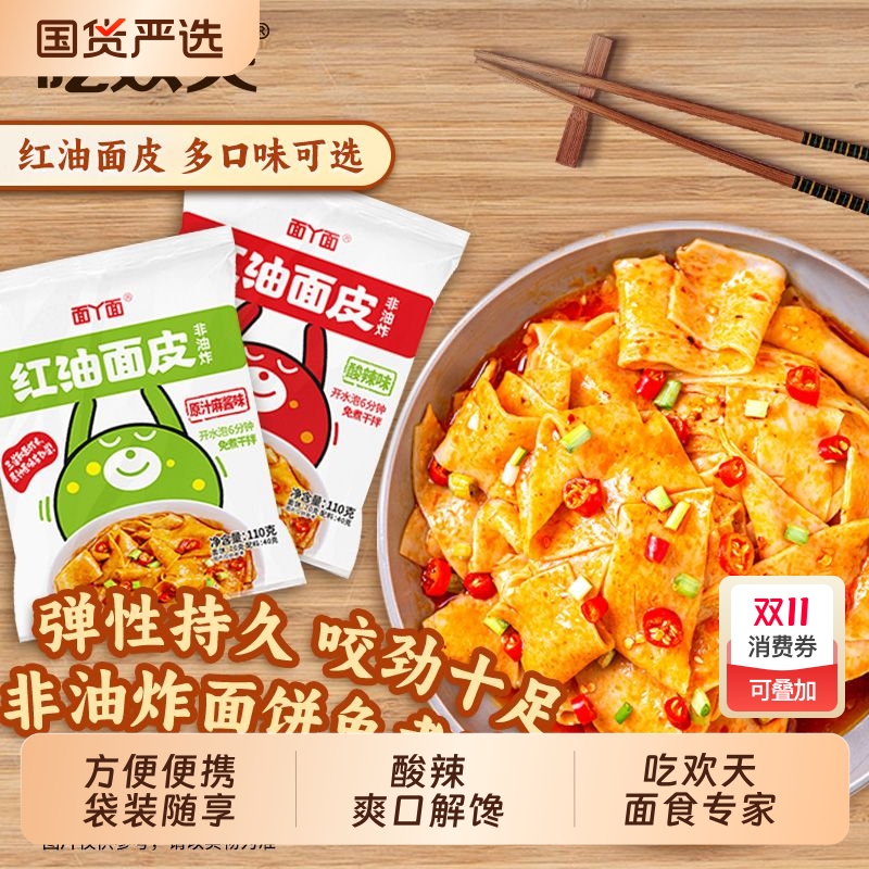 阿宽红油面皮袋装整箱非油炸2指宽面皮方便面夜宵速食干拌面免煮