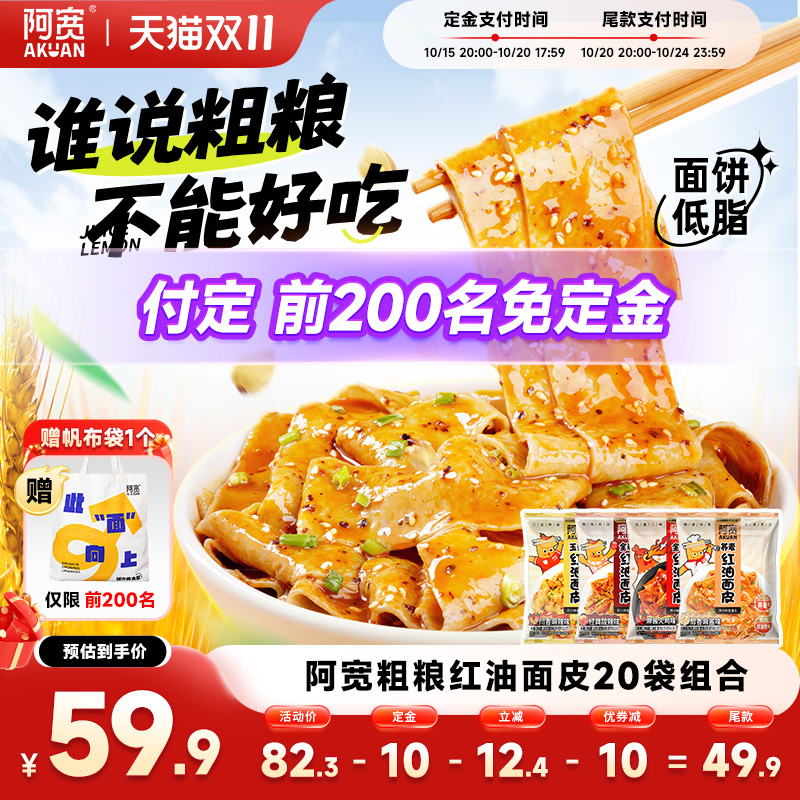 阿宽红油面皮凉皮20袋装免煮干拌面皮方便面懒人速食整箱官方旗舰