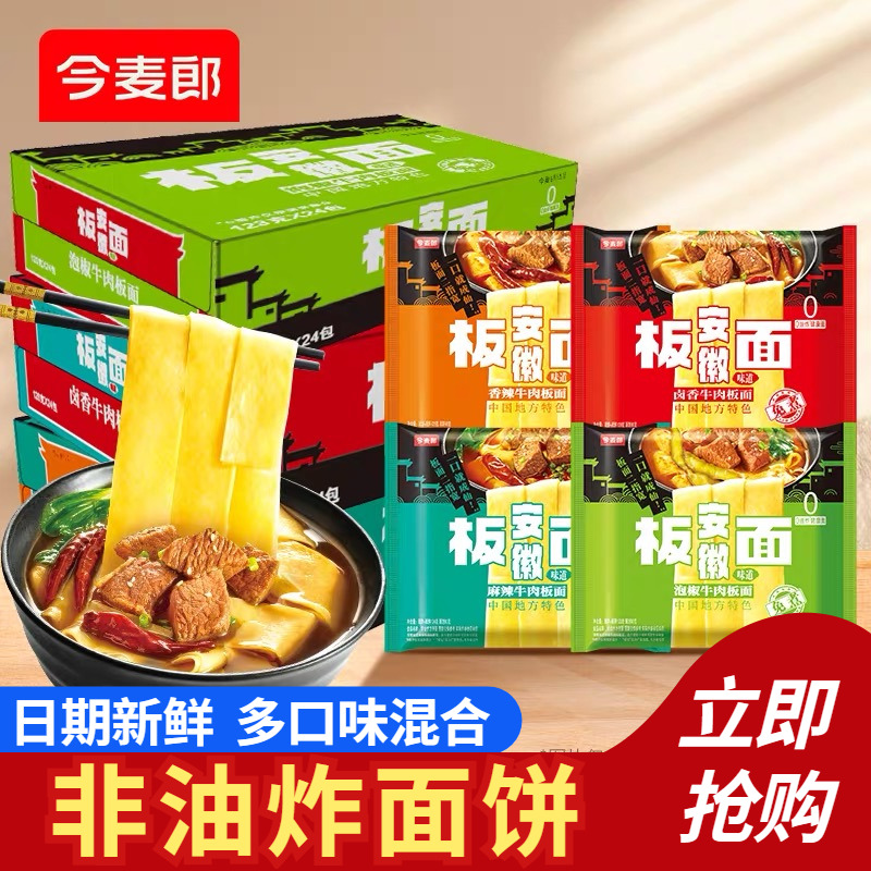 今麦郎安徽板面袋装面皮方便面整箱夜宵速食卤香牛肉面非油炸面饼
