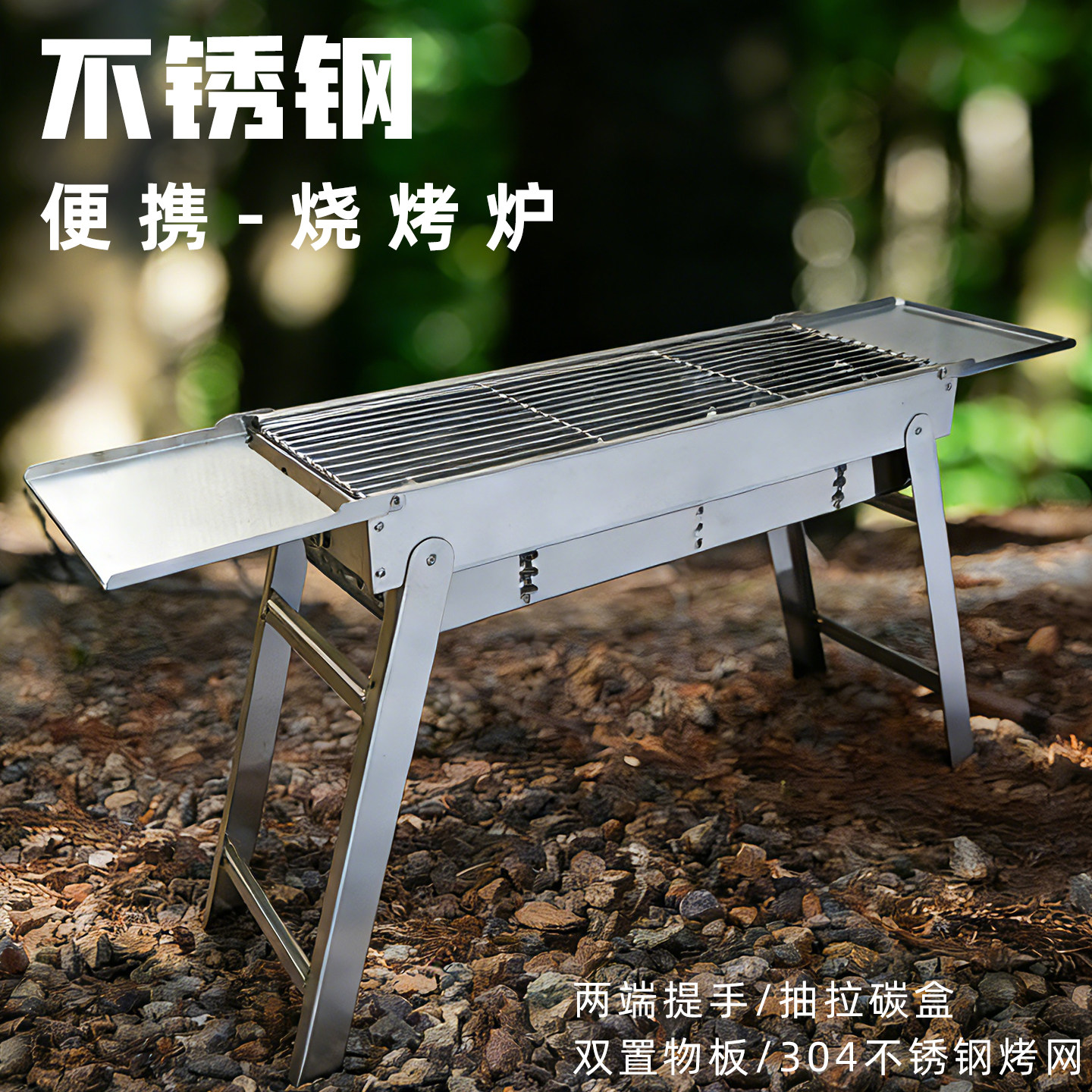 户外烧烤304不锈钢烧烤炉木炭家用露营折叠便携烧烤架庭院碳烤炉
