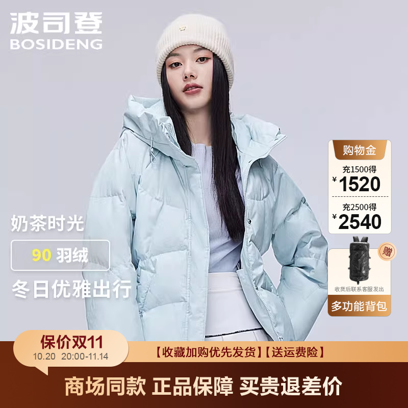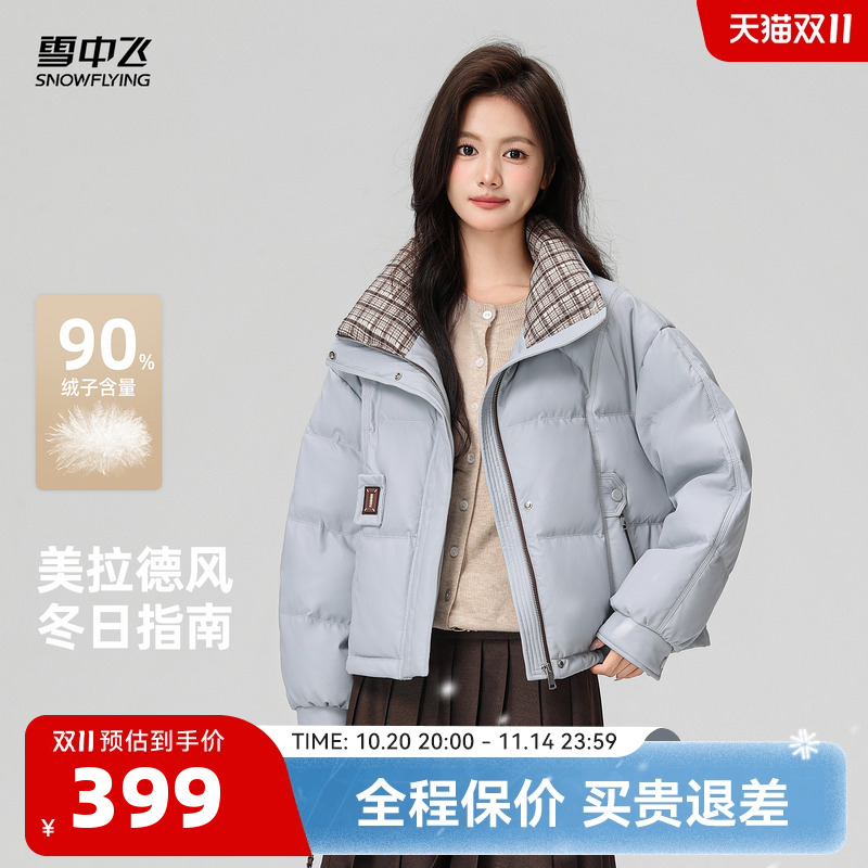 雪中飞羽绒服短款甜美女生2025秋冬新品保暖防寒时尚鸭绒舒适柔软