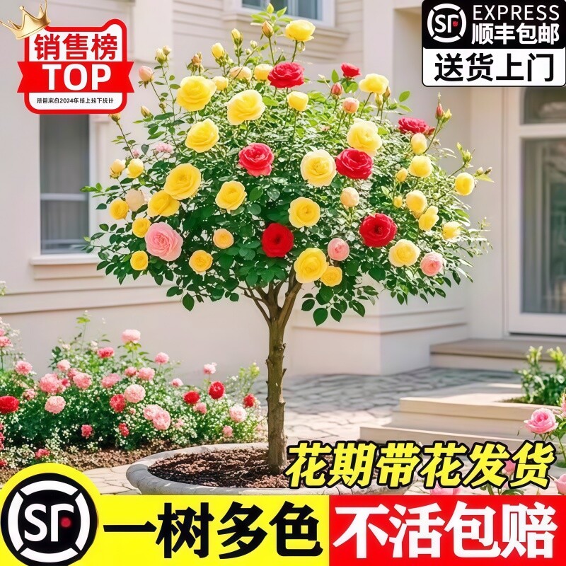 树桩月季特大花庭院阳台高杆棒棒糖树状花苗多色带花多季开花植物