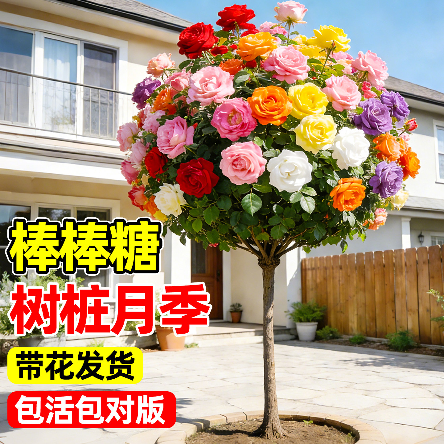 棒棒糖树桩月季花苗树状特大花朵四季花卉植物庭院老桩玫瑰花树苗