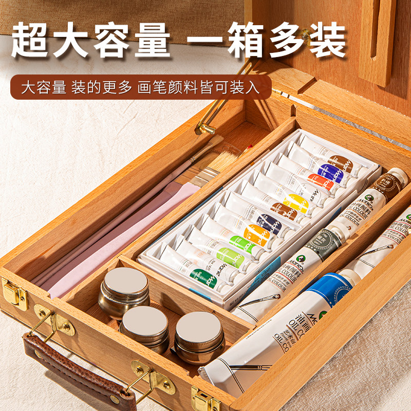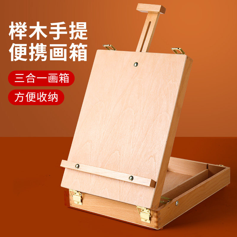 桌面画架台式画画工具套装美术生专用画板儿童画架油画工具套装素描初学者便携可折叠抽屉式油画箱木质绘画架
