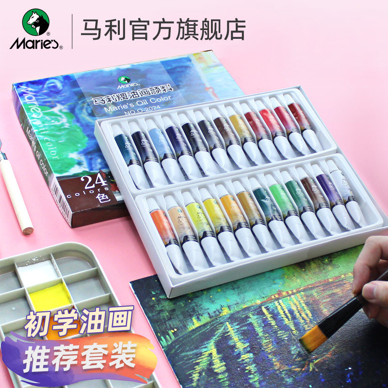 马利油画颜料工具套装初学者24色专用画画油彩手绘材料刮刀入门油画框玛丽牌画的染料专业美术用品全套旗舰店