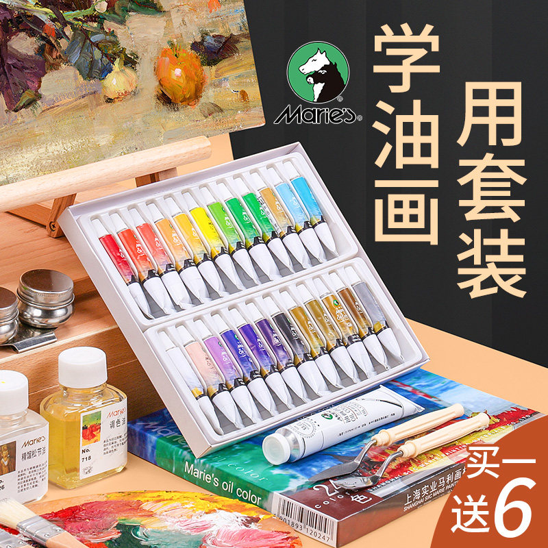 马利油画工具套装初学者24色专用画画油画颜料丙烯材料刮刀入门油画框玛丽牌画的染料专业美术用品全套旗舰店