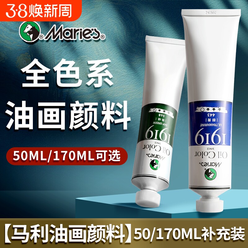 马利油画颜料单支50/170ML大容量油画工具套装全色系单支白色油画布油画画框松节油画刮刀玛丽丙烯金色旗舰店