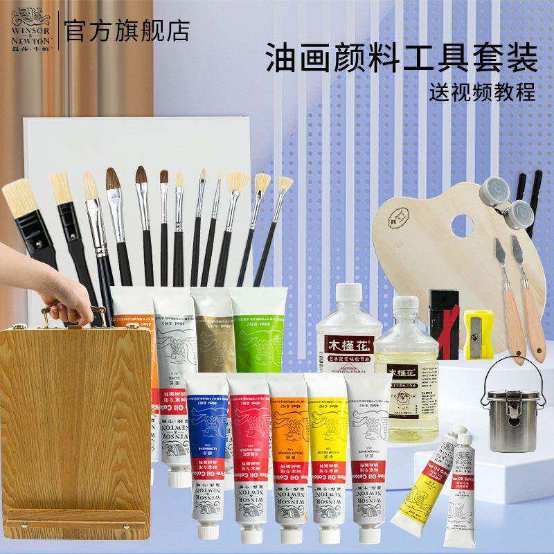 温莎牛顿油画颜料套装单支管状初学者新手入门学生儿童美术生画家专用12色18色24色油画布油画工具套装油画框