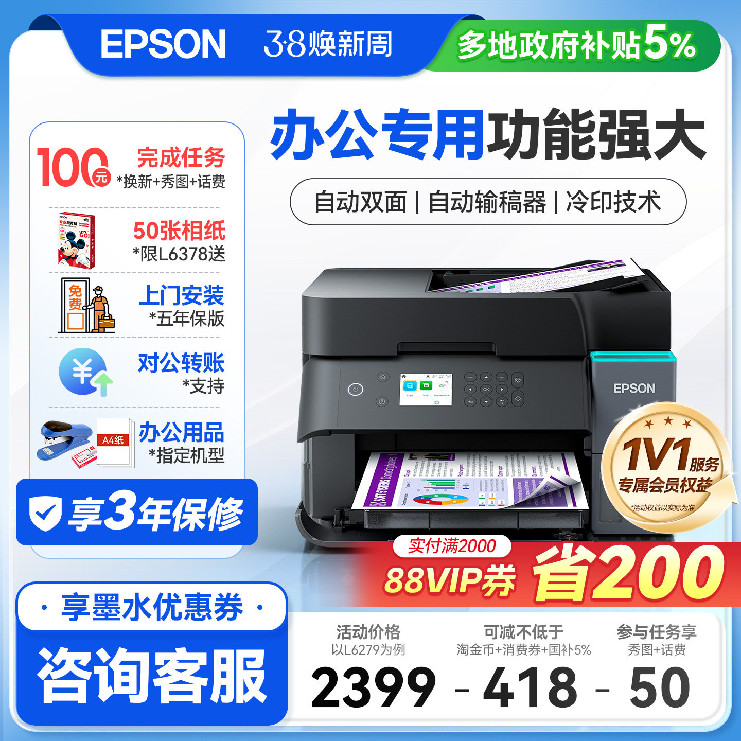 【政府补贴】爱普生打印机L6378 6398 6279 6468 3556 3558 M2128办公专用彩色墨仓式自动双面输稿器连续复印