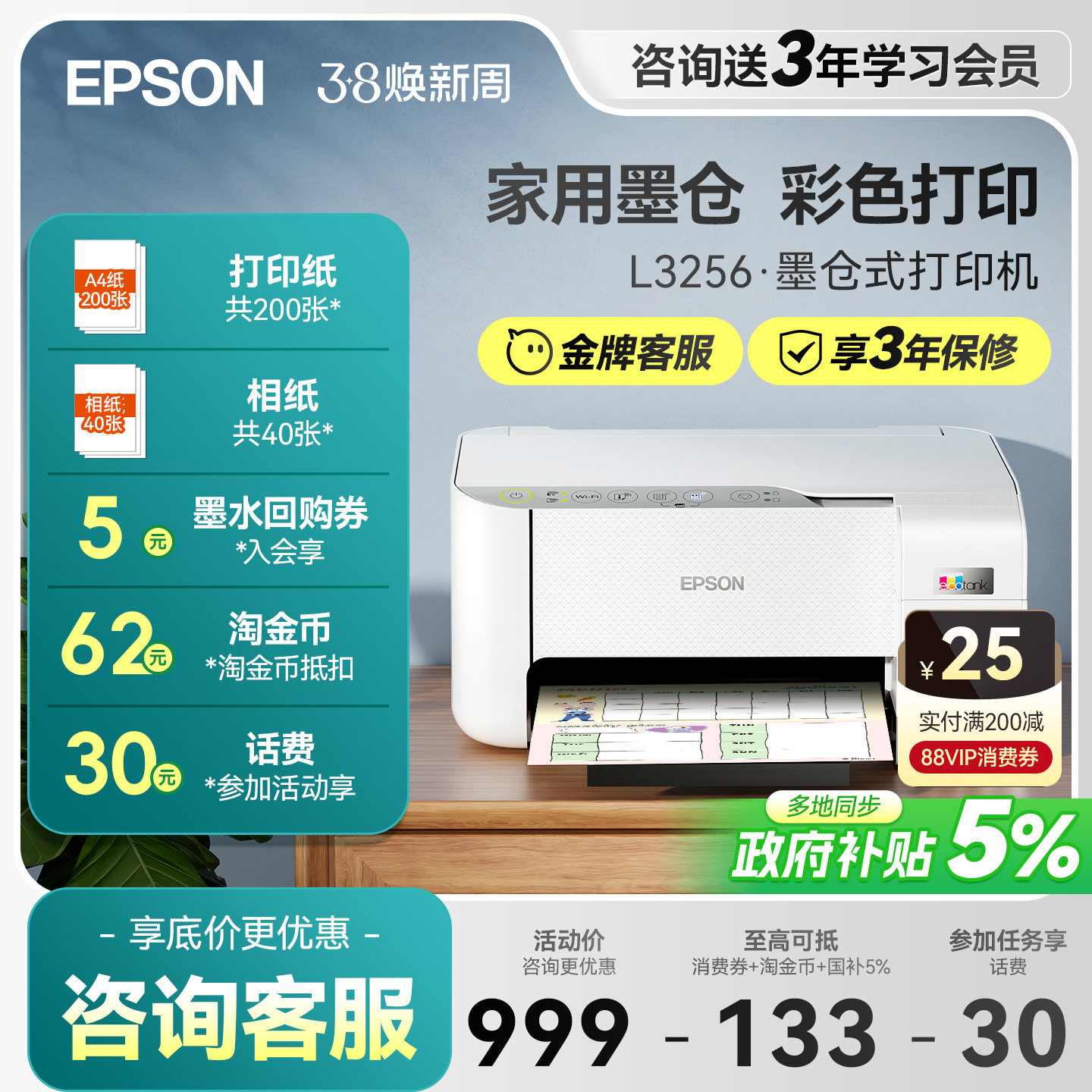 【政府补贴】爱普生打印机L3256 3258 4263 4269 3556 4366家用墨仓式彩色复印扫描一体照片无线小型可连手机