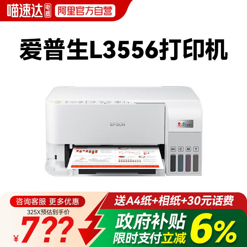 【政府补贴】爱普生打印机 L3556 L3558彩色A4打印复印扫描喷墨仓式一体机可连手机WiFi高速专用系列办公专用