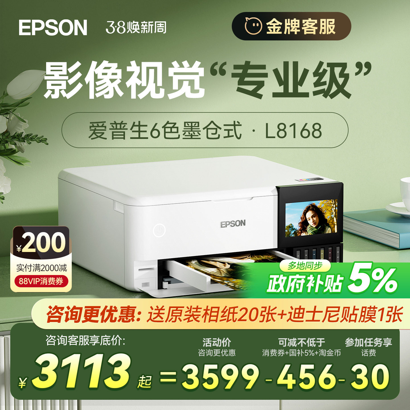 【政府补贴 】爱普生Epson L8168 照片打印机高品质6色A4彩色喷墨打印复印扫描一体机wifi无线大墨仓