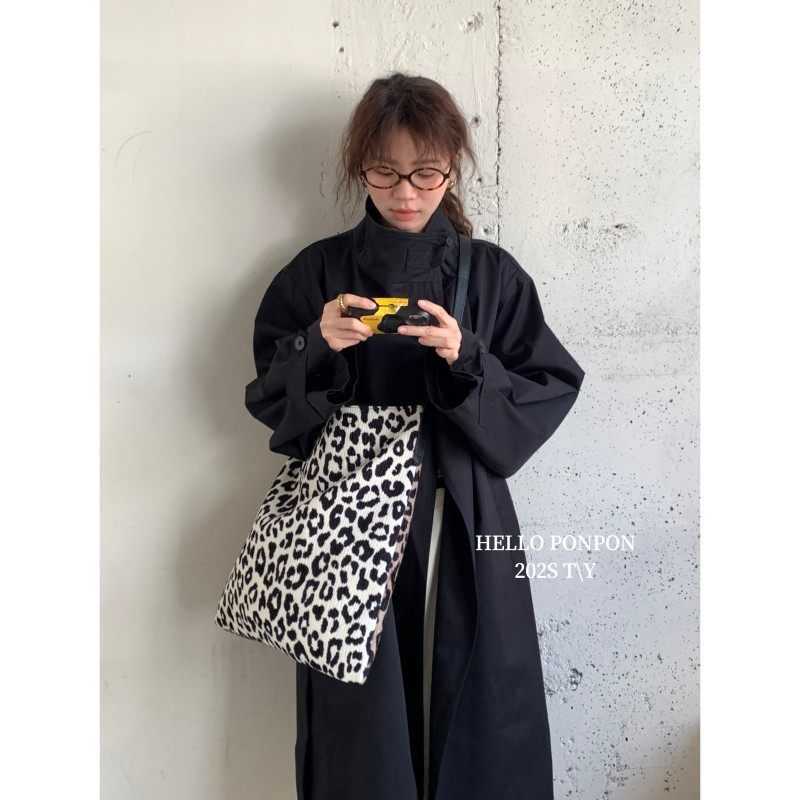 麂皮绒秋冬复古豹纹单肩包包女 韩系ins风休闲帆布包大容量托特包