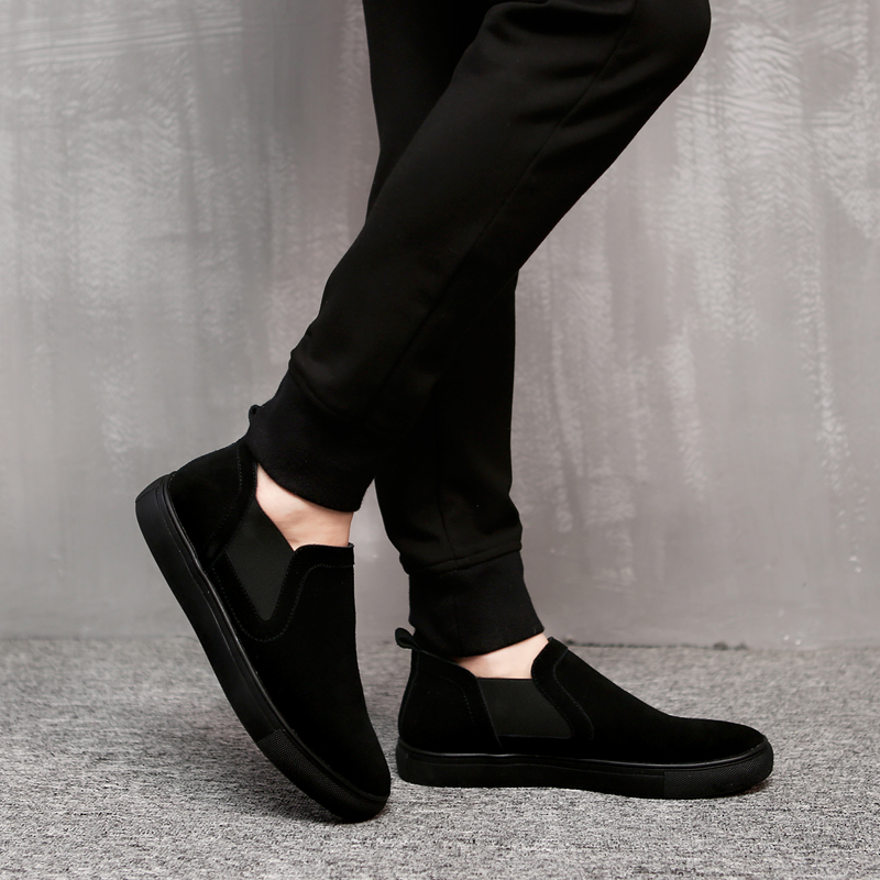 懒人休闲皮鞋一脚蹬软底豆豆鞋男士韩版潮流磨砂反绒小皮鞋潮鞋子