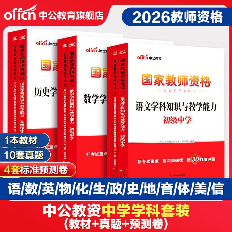 【科目三学科】中公教资考试资料中学2026教师证资格用书教师资格初中高中数学语文英语美术体育音乐政治历史地理物理化学生物信息