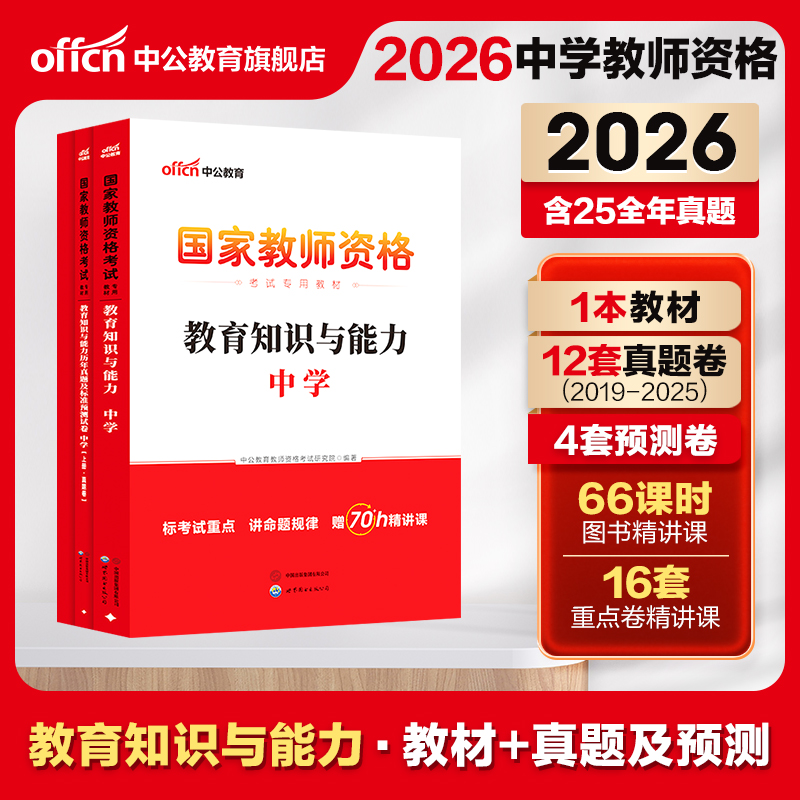 中公教资中学教师资格证考试用书2026中学初中高中 教师资格教考试专用教材教育知识与能力 中学历年真题试卷教师资格证考试用书