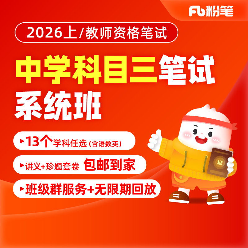 粉笔课程】粉笔教师教资证 2026上中学教师资格证考试教材科目三美术体育2026粉笔教资高中学考试资料网课视频真题教材系统班
