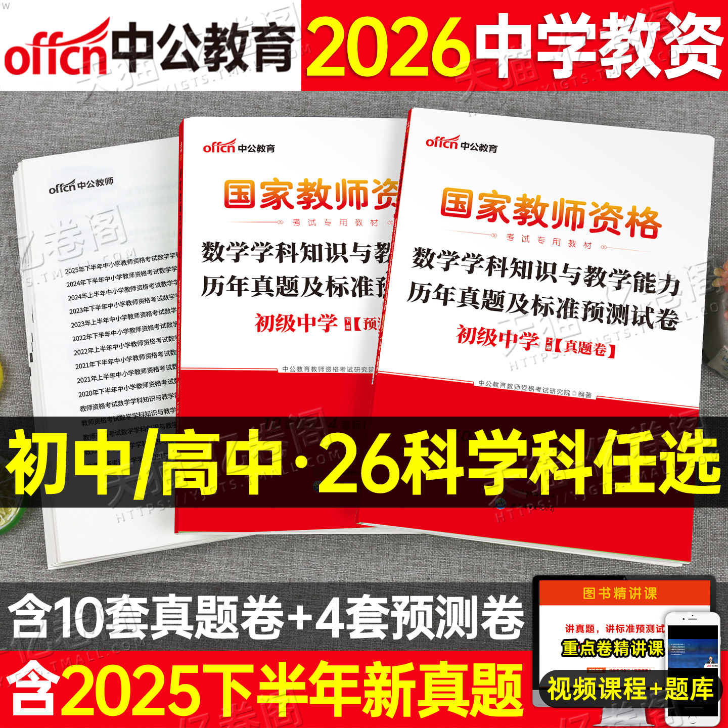 中学教师证资格2026年真题试卷高中初中语文数学英语政治历史地理物理化学生物音乐美术体育信息技术教资真题科目一二三真题模拟题