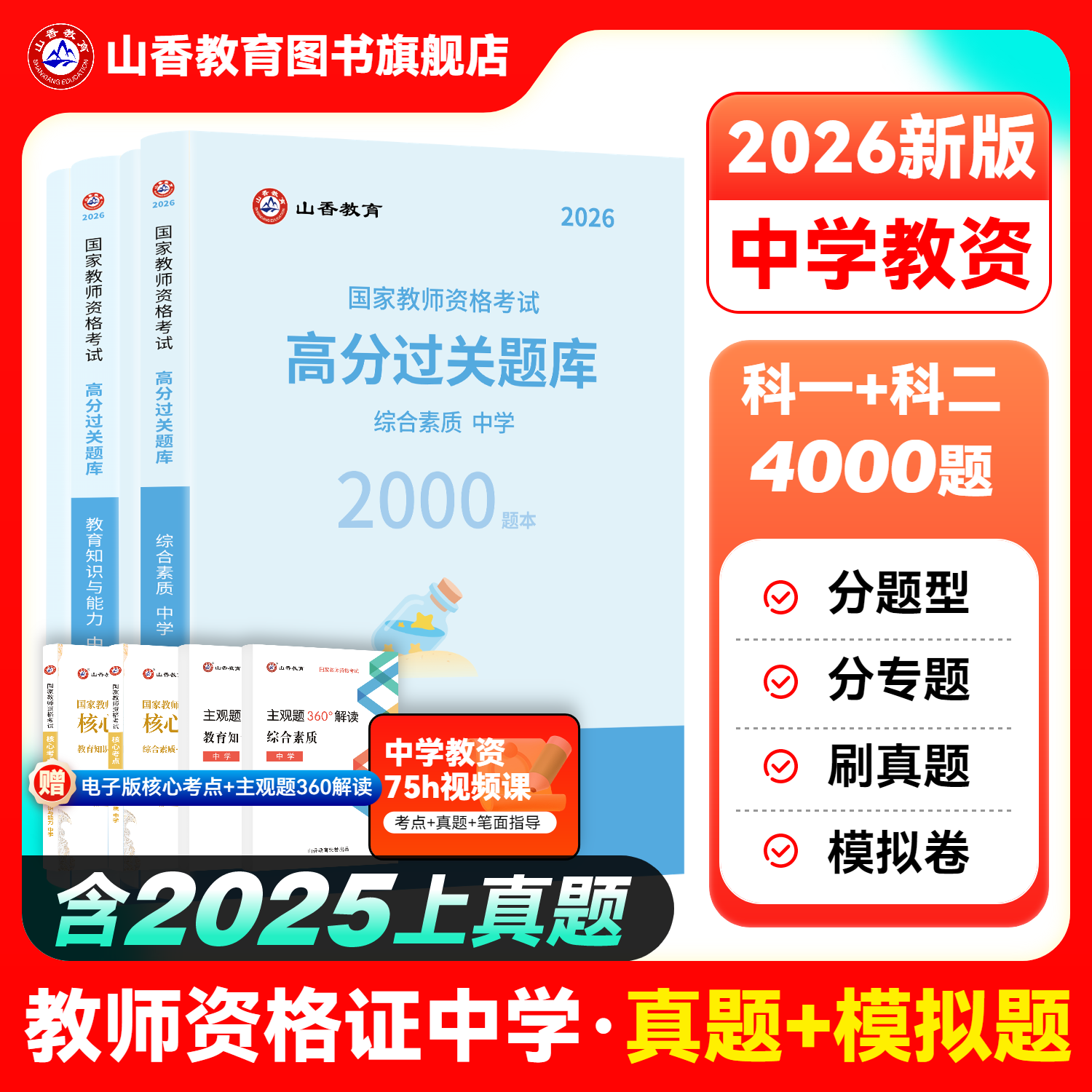 山香教育2026国家教师证资格证考试教资考试中学综合素质初中高中数学语文英语音乐体育美术政治历史地理物理化学生物信息技术
