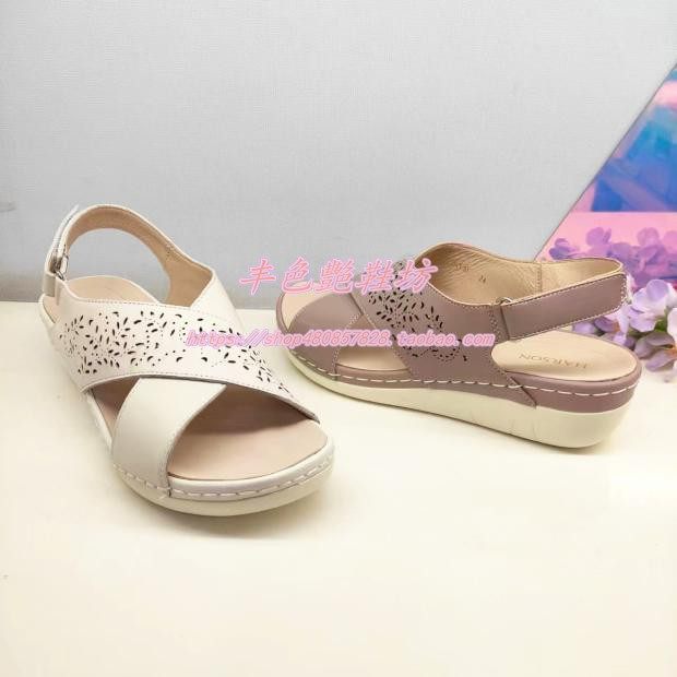 HM246102正品Harson/哈森24夏季新款镂空交叉带厚底坡跟女凉鞋