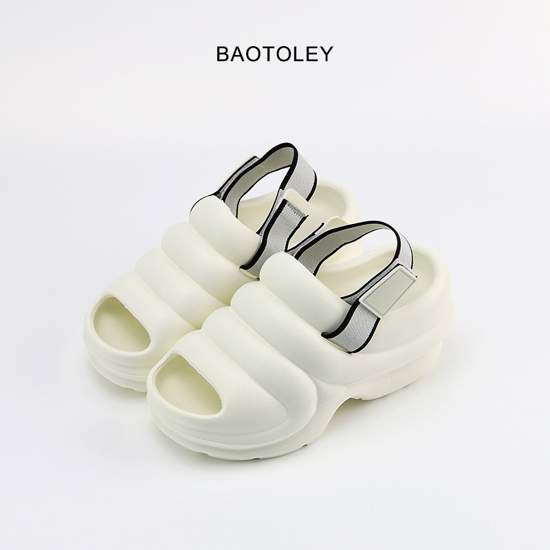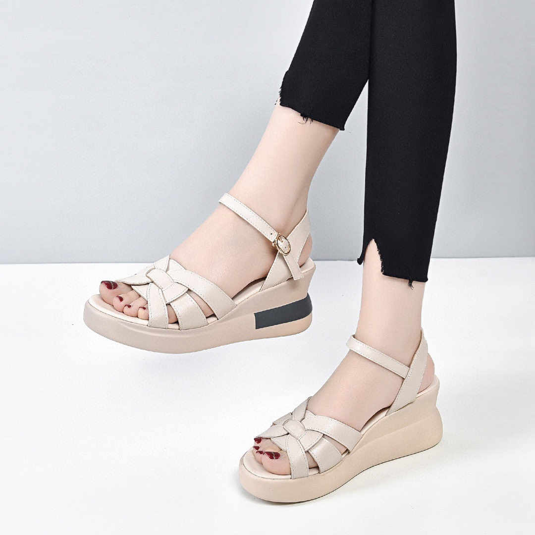 2023夏季新款坡跟女凉鞋头层牛皮露趾后空一字带休闲防水台厚底鞋