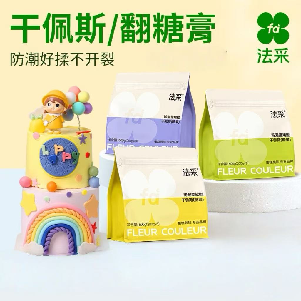fc法采翻糖膏防潮干佩斯200g蛋糕装饰食用翻糖皮糖牌人偶通用烘焙