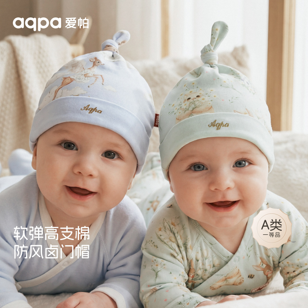 aqpa爱帕婴儿帽子纯棉春秋男女新生宝宝胎帽辫子帽小月龄洋气好看