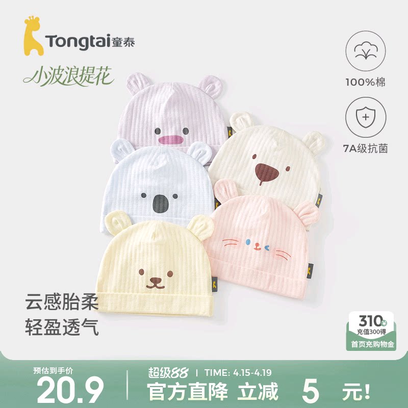 童泰婴儿帽子夏季纯棉初生宝宝胎帽新生儿护囟门帽提花双层防风帽