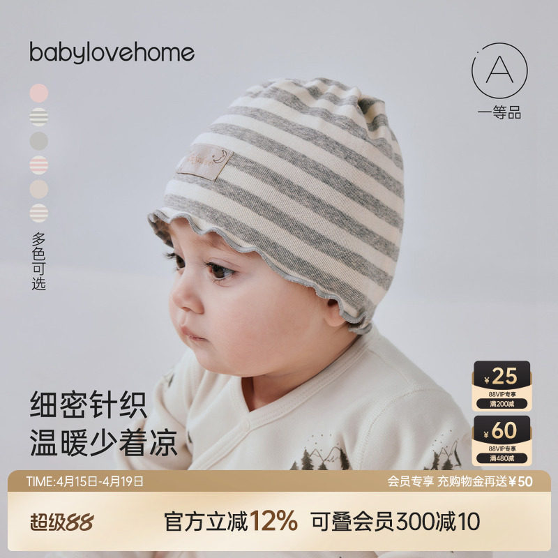 babylove婴儿胎帽春秋男女宝宝护囟门帽新生儿条纹帽子满月包头帽