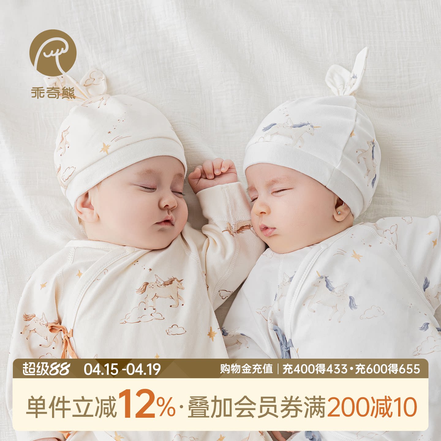 乖奇熊马年宝宝纯棉胎帽无骨春秋季新生儿护囟门产房帽子外出可爱
