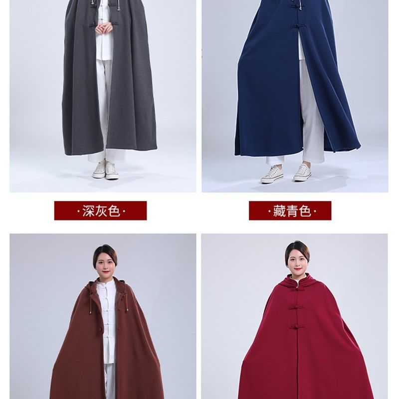 武当山太极服男女披风冬款加厚加绒保暖长袍披风中式汉服打坐斗篷