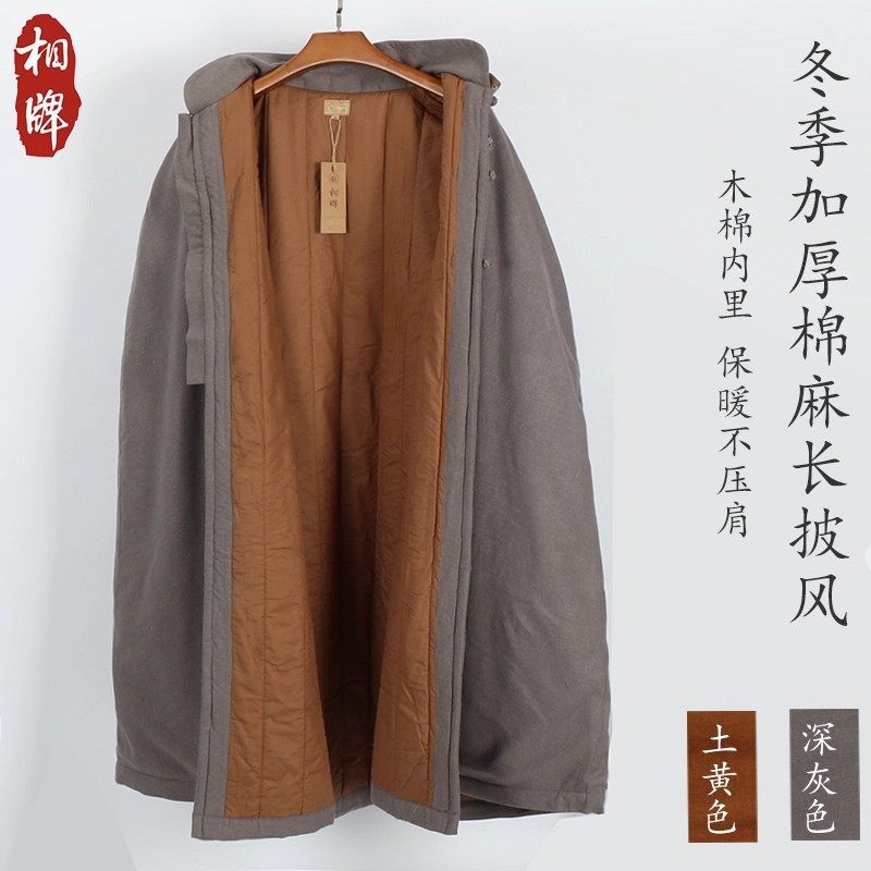 长披风新款僧人打坐披风双层禅修披风连帽居士服棉麻加绒僧服斗篷