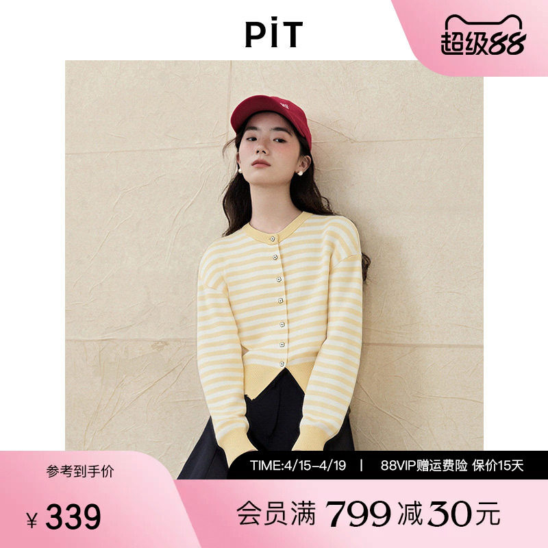 PIT复古柠檬黄条纹毛针织衫女2026春季新款毛衣开衫上衣外套