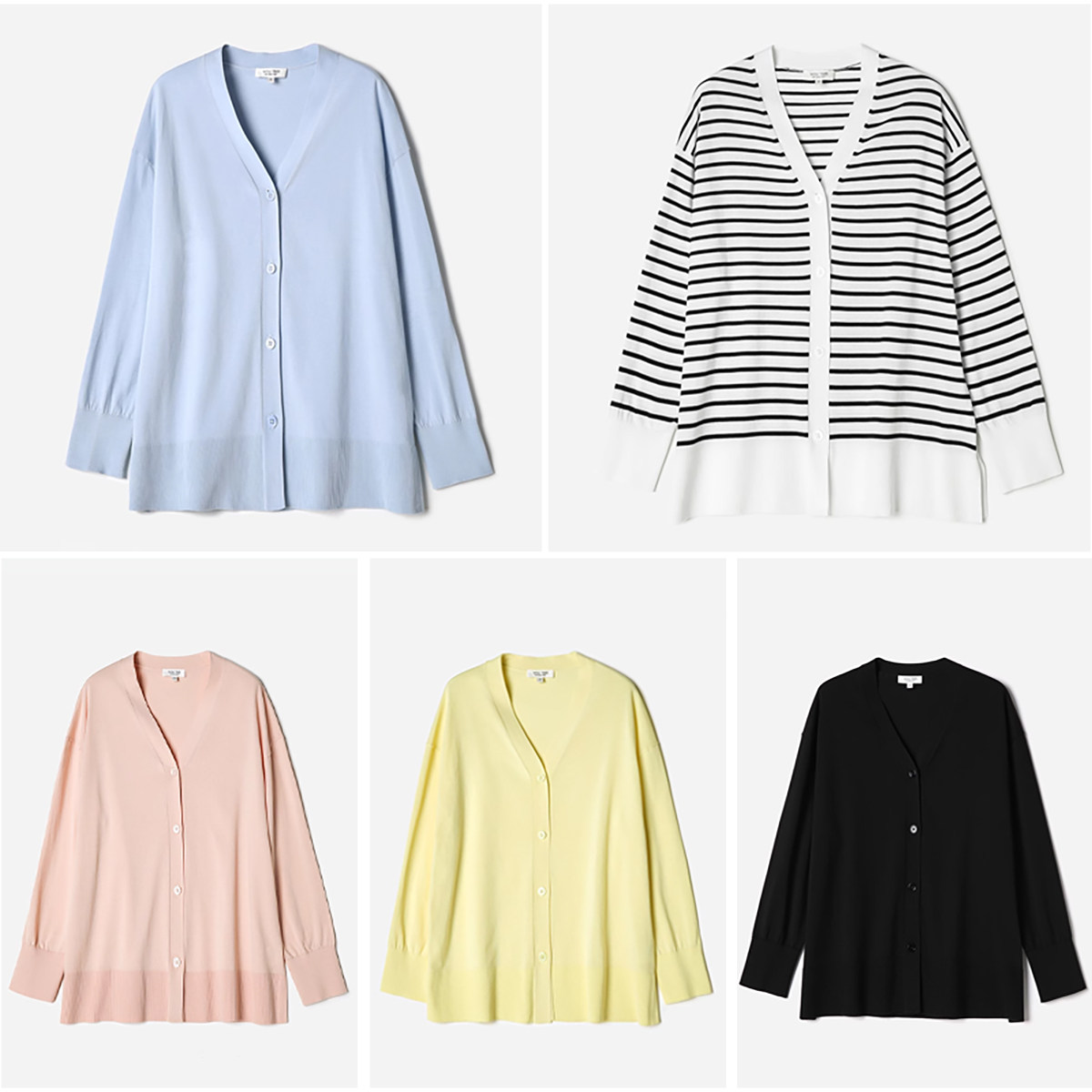 *WZK07046 茉莉雅集 轻盈柔和V领全棉撞色条纹/纯色长袖针织开衫