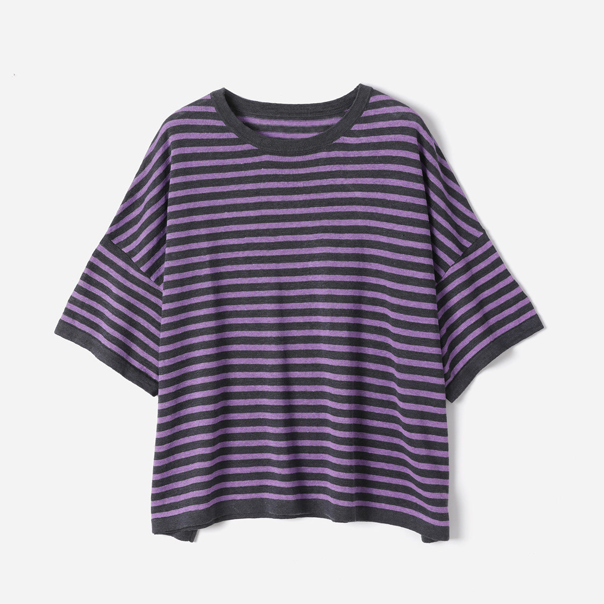 WZT09030 茉莉雅集 全亚麻干爽透气条纹圆领落肩针织套衫春夏女
